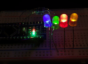 But since the Atmega 328P has only 6 PWM capable GPIOs, let’s calculate how much of the CPU time the update of 6 LEDs at 100Hz would consume (now assuming it takes \( t_{led} = 100000ns = 100μs\) per Update per LED, taking additional overhead into consideration). Time taken for 6 LED updates per second = \( 6 \times t_{led} \times 100 = 60,\text{ms} \). That means that on every second, 60ms or 6% of CPU time is spent for updating the 6 LEDs and 94% of CPU time is available for other tasks.